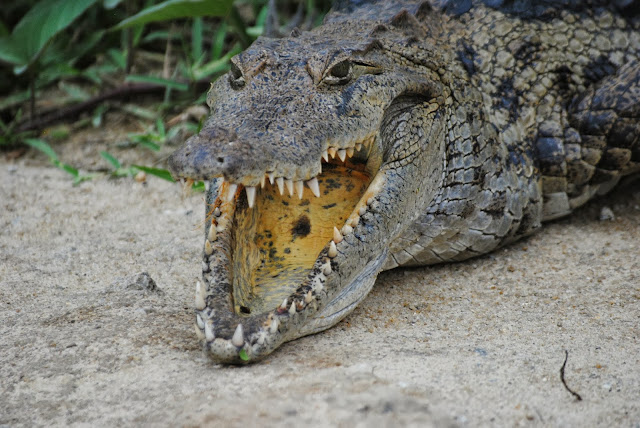 We stopped by Kakum National Park, a rainforest that has been preserved and made famous by its “canopy walk,” which is basically a series of rope bridges suspended between trees. As we were leaving Atsu suggested we stop by a place where we could see some “dwarf alligators”. I figured we would see some in the distance, take a few photos, get back in the car. That was NOT what happened. Let it be known that I’m okay with large reptiles behind glass, behind fences, behind TV screens. And that’s about where my comfort zone ends. You can imagine my…delight when we crossed a bridge and saw a woman dangling a hunk of raw chicken from a pole less than ten feet from where we were standing buy levitra. A gigantic beast was slinking through the water and making its way towards the bait. I pretended to join everyone in saying, “Wow, this is so cool, how amazing!” but secretly I was scanning the trees, wondering how fast I could climb to safety if things got out of control. I can see no difference between a “dwarf alligator” and a “regular alligator.”