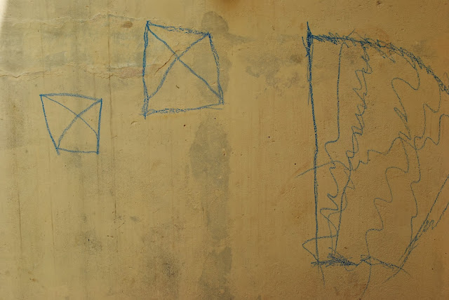| The Yellow House has officially been kid-o-fied...we found this crayon masterpiece on one of the walls. |