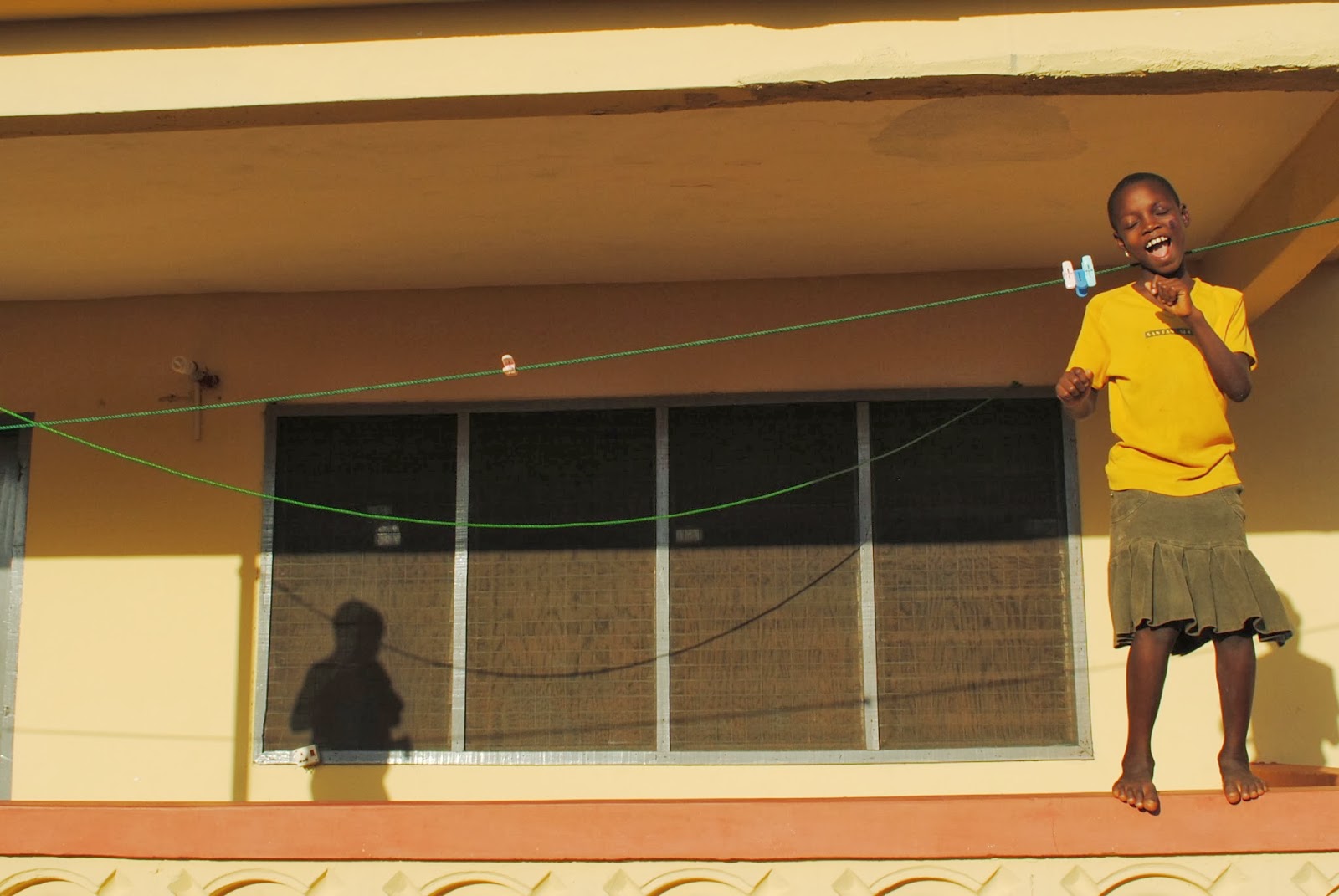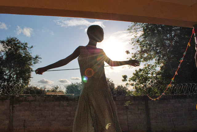 | the girls usually wash their clothes in the morning and then lay them on the concrete to dry in the afternoon sun. This is about 5:00pm, when the sun starts to set. |